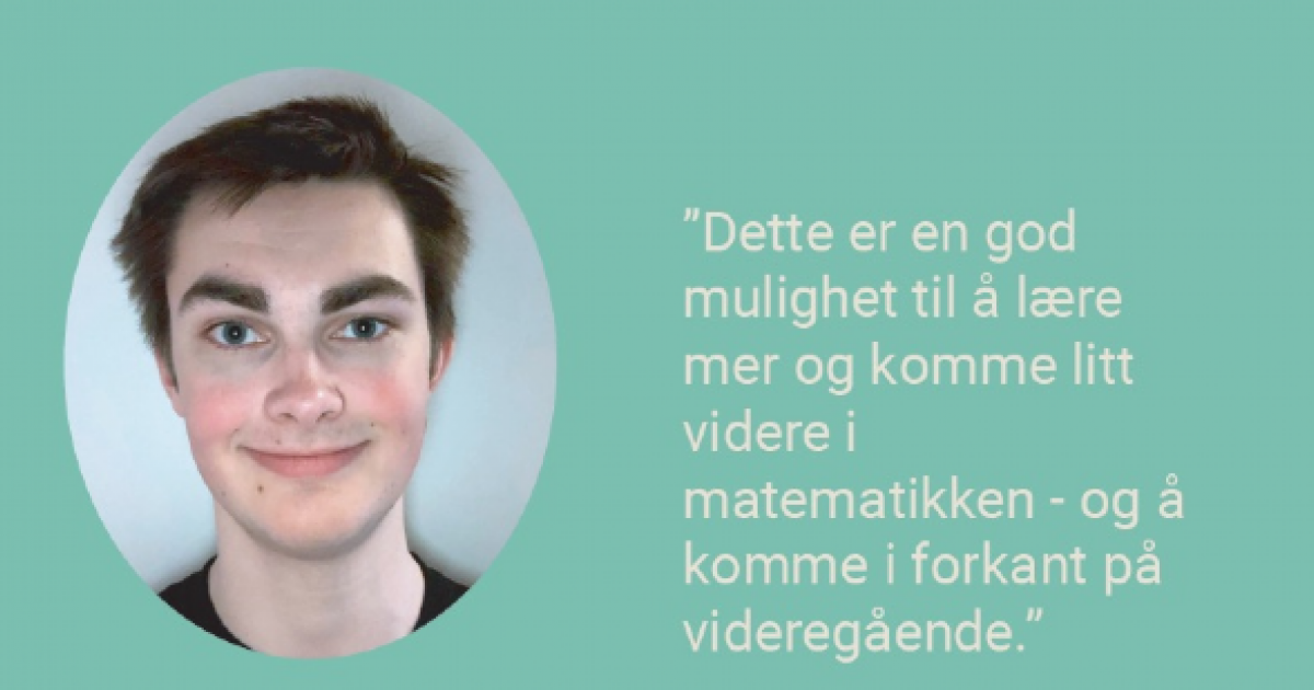 - Å investere i matematikk kan ikke hindre deg, og kunnskap er lett å bære på, sier Jørgen Aleksander Arnesen. Han tok 1T mens han gikk på ungdomsskolen gjennom Den virtuelle matematikkskolen, og anbefaler andre motiverte elever å gjøre det samme.